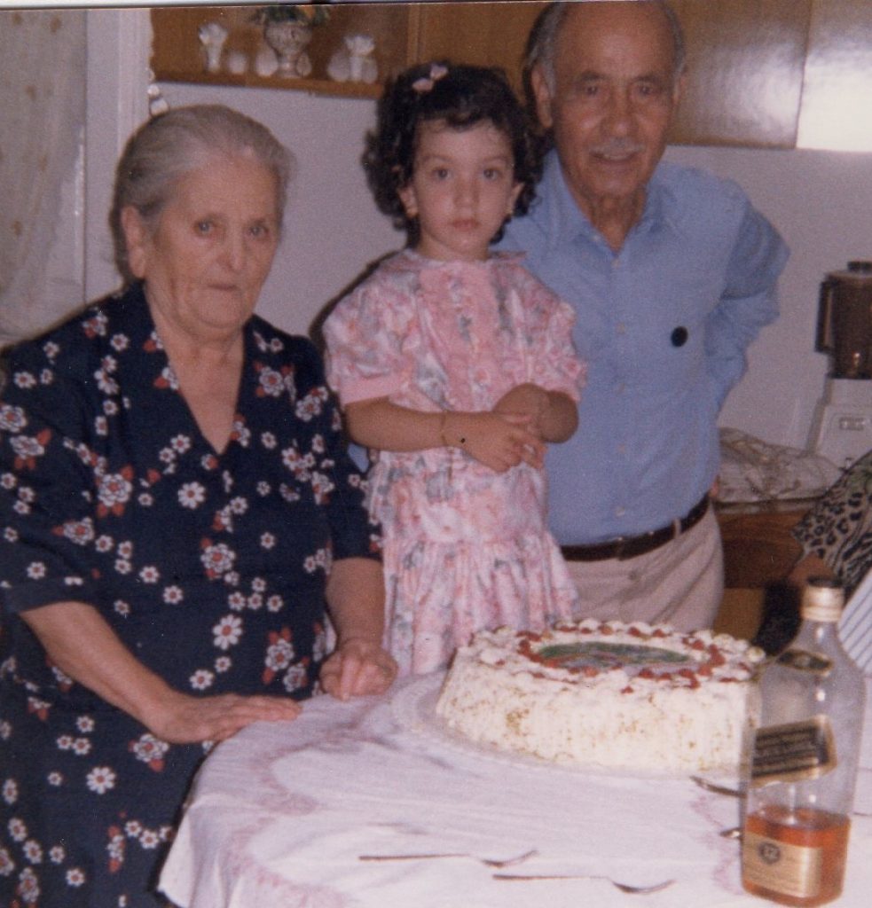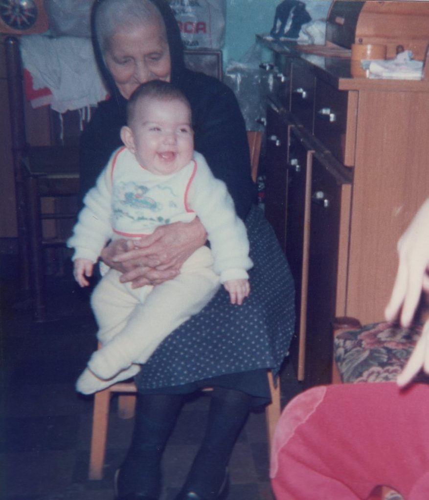 “A PAPUZZA” che da noi in Sicilia sta per piccola come una coccinella. Lei la nonna che tutti vorrebbero nata nel 1908, vestita a lutto vita natural durante dopo la morte del marito, saggia, pudica, amorevole. Se io stavo male cosa che non accadeva di rado, finché non fossi stata in grado di alzarmi e mangiare non mangiava neanche lei. Continuava a vivere la sua epoca ai giorni nostri mantenendo una mentalità invalicabile che ha reso difficili i rapporti in quella casa. Ho imparato molto da lei generosità, apprensione e amore incondizionato. Accanto alla sua piccola sedia vi era la sorella la zia Concetta anche lei viveva da noi, un tipetto particolare pretenziosa, poco garbata, ogni tanto tra un attacco di ira e uno di autocommiserazione adorava ascoltare le mie poesie tornata da scuola, ma più delle volte assistevamo a scenate di brontolo-mormorio, ne ricordo perfettamente una di queste dove mancò di rispetto a mia madre a tal punto da far scaturire in me una reazione inaspettata a soli quattro anni, giocavo li accanto con delle pentoline per bambini ad un tratto mi avvicinai, difesi mia madre e le diedi un colpo di quella sulla mano. Il mio gesto eroico però finì con una mia punizione. Insieme le due sorelle battibeccando guardavano i programmi in TV a varie fasce orarie puntuali come un orologio svizzero limitandomi nelle mie attività